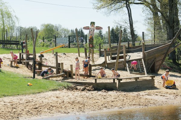 • riesiger Wasserspielplatz mit Holz-Piratenschiff
